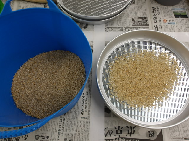 玄米を1.85mmのふるいにかけ、ゴミや被害粒などを除去。