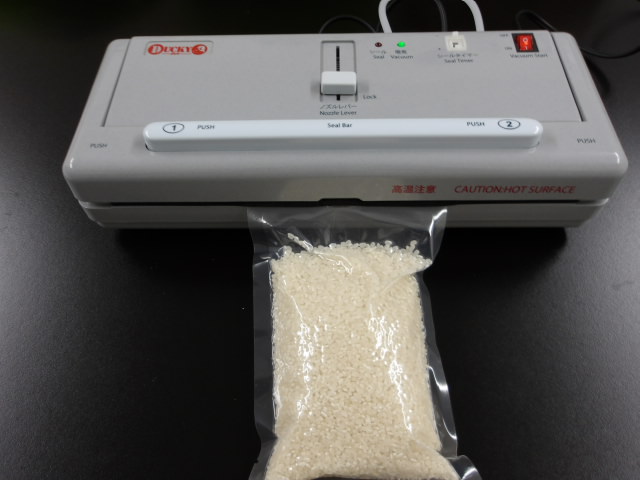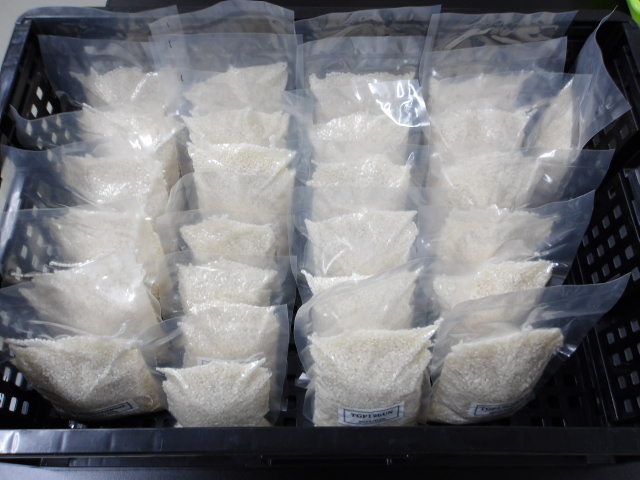 精米後、1合や2合ずつ試験用に真空パックしてラベルを貼って完了。