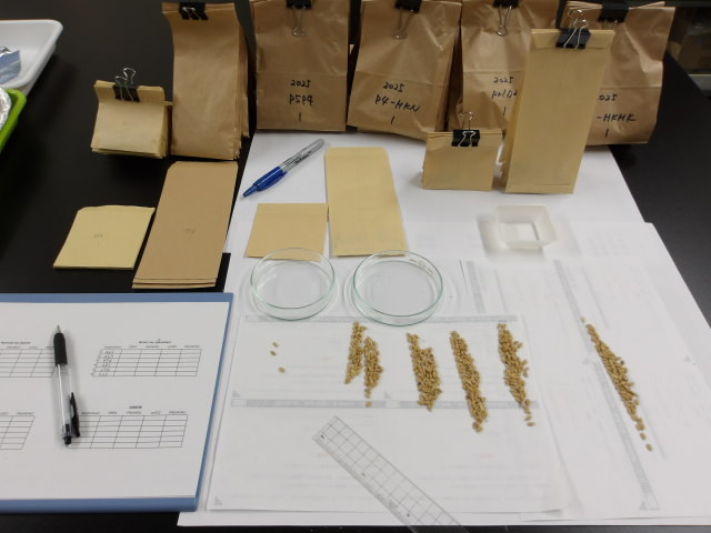 採種作業を実施しつつ、研究室では収穫物の調整を開始。